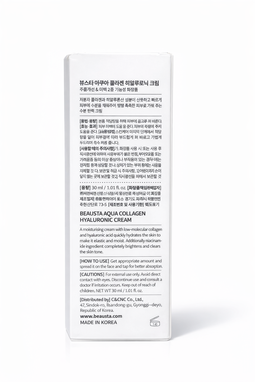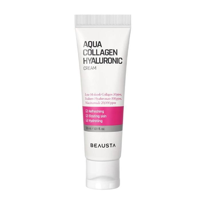 Beausta Aqua Collagen Hyaluronic Cream is a lightweight moisturizing face cream that deeply hydrates and refreshes the skin. Enriched with low-molecular collagen, hyaluronic acid, and niacinamide, it helps improve skin elasticity, maintain moisture, and brighten the skin tone. The smooth formula absorbs quickly, leaving skin soft, firm, and hydrated throughout the day.